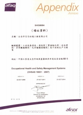 已經獲得最嚴格的法國AFAQ-EAQA ISO9001、ISO14001、OHSAS18001認證,取得電廠鍋爐化學清洗A級資質。